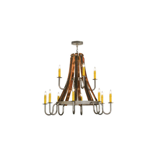 Barrel Stave Madera 12 Light 44" Wide Taper Candle Style Chandelier