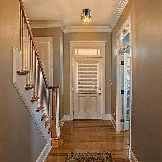 Wire Frame Lantern Outdoor Flush Mount Light Traditional LED Ceiling Light