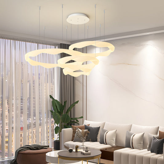 Wavy Circle Rings Three Step Dimming LED White Cream Modern Chandelier