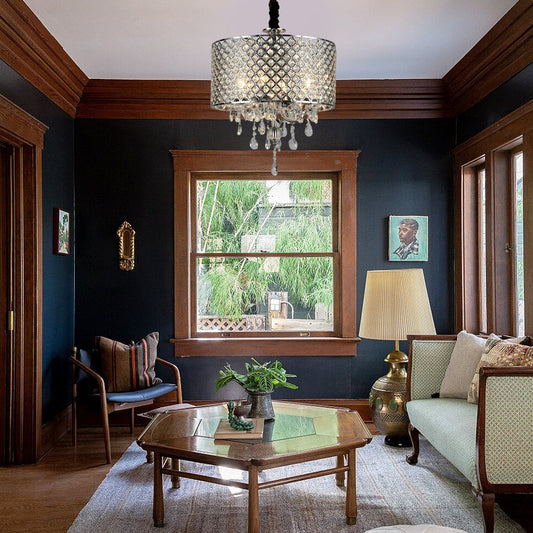 Round Iron Crystal Pendant Retro American Style Chandelier Hanging Lights