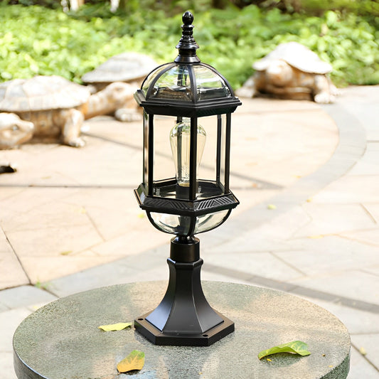 Retro Creative Metal Glass Waterproof Black Modern Fence Post Lights