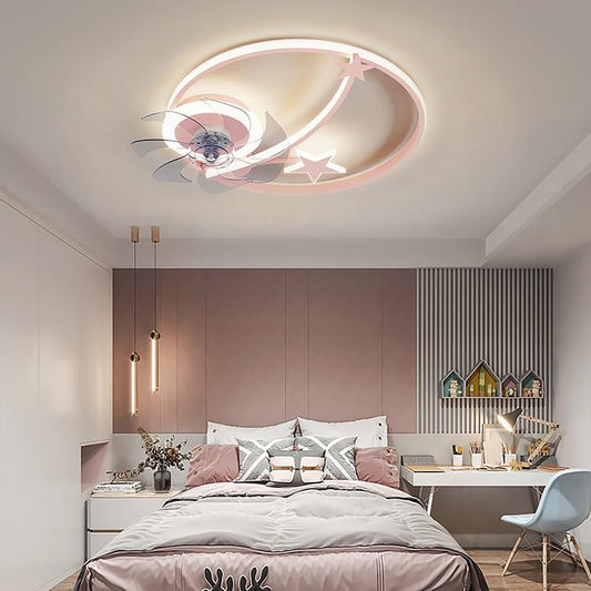 Circle Star Shaped Flush Mount Baby Kids Ceiling Fans with Lights and Remote