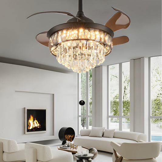 20'' Black Crystal Retractable Blades Ceiling Fan with LED Lights