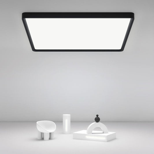 Modern Rectangular Shaped Black Flush Mount Ceiling Lights with Edge and Remote Control