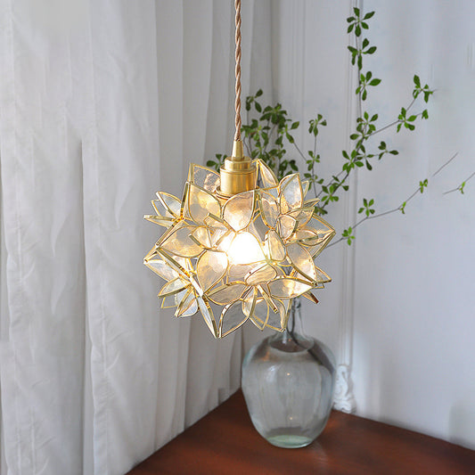 Glass Gardenia Petals Romantic Warm LED French Style Pendant Lights Fixture