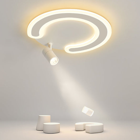 White Arc Flush Mount Light with Spotlight for Study Bedroom