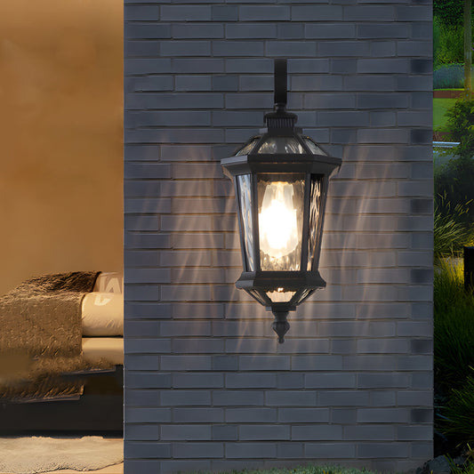 1-Light Black Clear Water Glass Outdoor Wall Light Lantern Wall Sconce Porch Wall Mounted Lights Exterior Wall Lamp