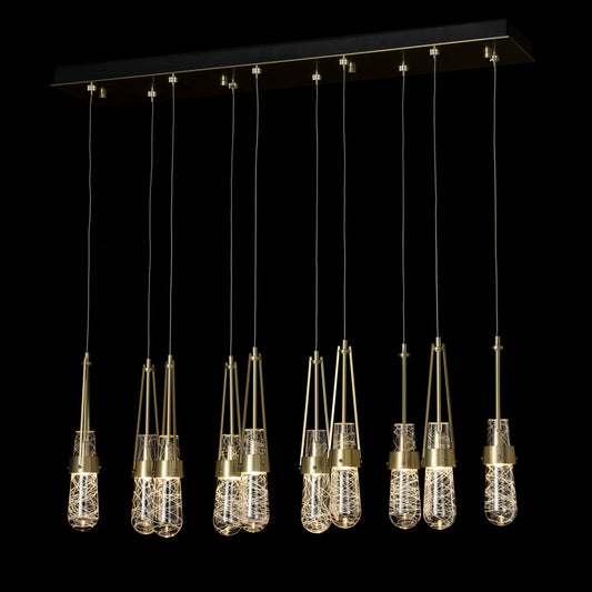 Link 10-Light Blown Glass Pendant 10-Light Clear Glass with White Threading (YJ) in Modern Brass