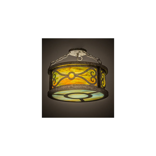 Fly Fishing Creek 3 Light 16-1/2" Wide Semi Flush Ceiling Fixture with Multi-colored Glass Shade