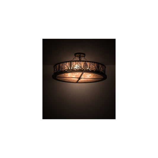 Mountain Pine 8 Light 30" Wide Semi-Flush Drum Ceiling Fixture - Mahogany Bronze Finish