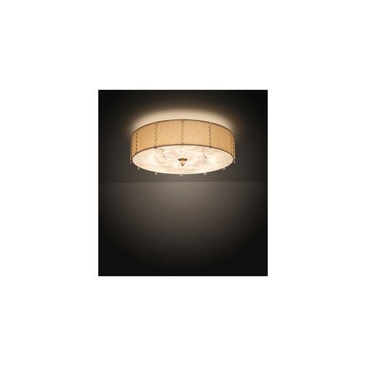 Cilindro Lujoso 8 Light 32" Wide Semi-Flush Drum Ceiling Fixture with Natural Silk Shade - Brass Finish