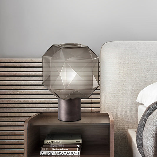 1-Light Cylinder and Cubo Smoke Glass Orb Modern Table Lamp