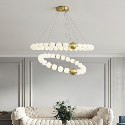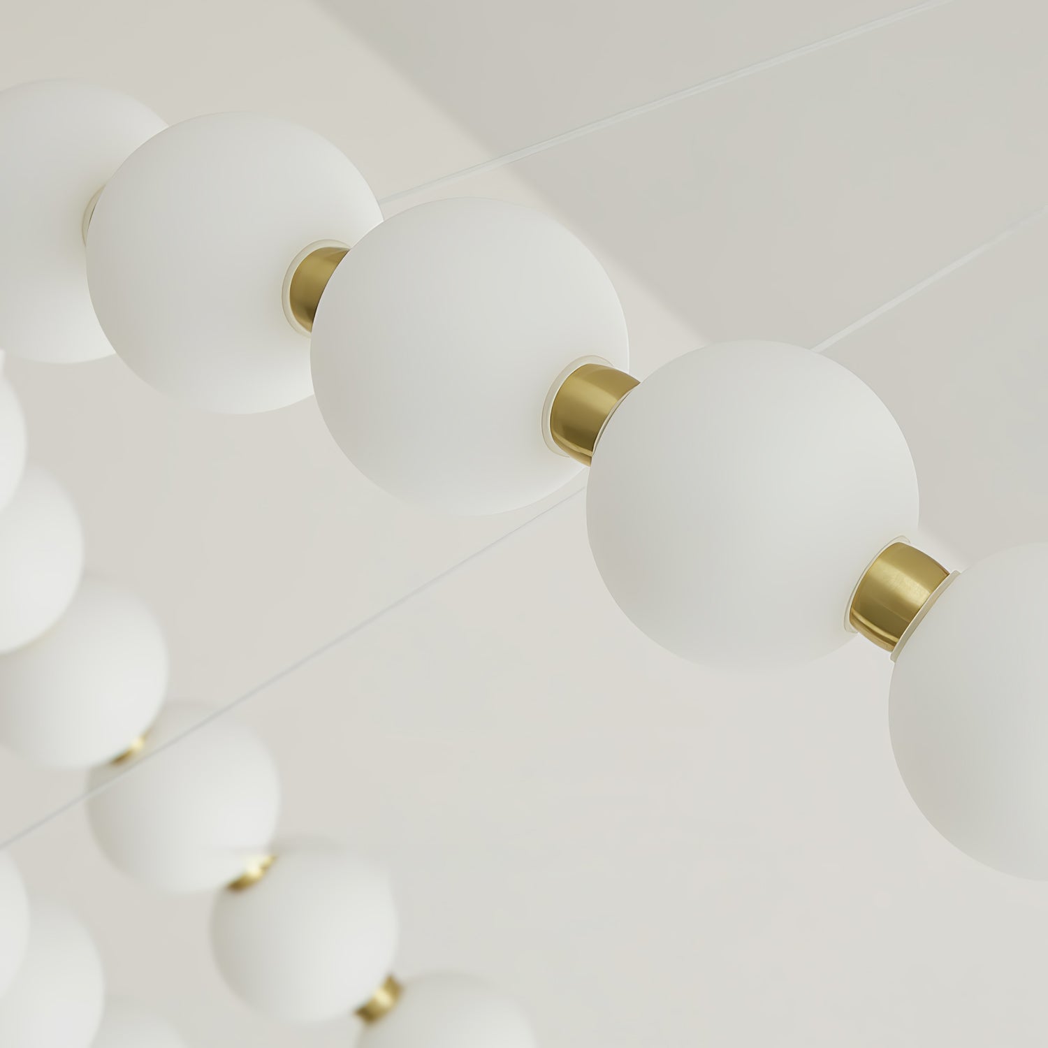 Enhance your home with our Acrylic Pearls Chandelier. Made with a brass base and white plastic orbs, this stylish chandelier combines a unique design with universal appeal. Its lighting forms will create a warm and welcoming atmosphere for gatherings and quality family time.