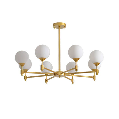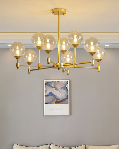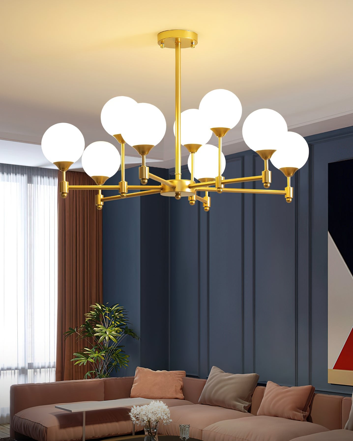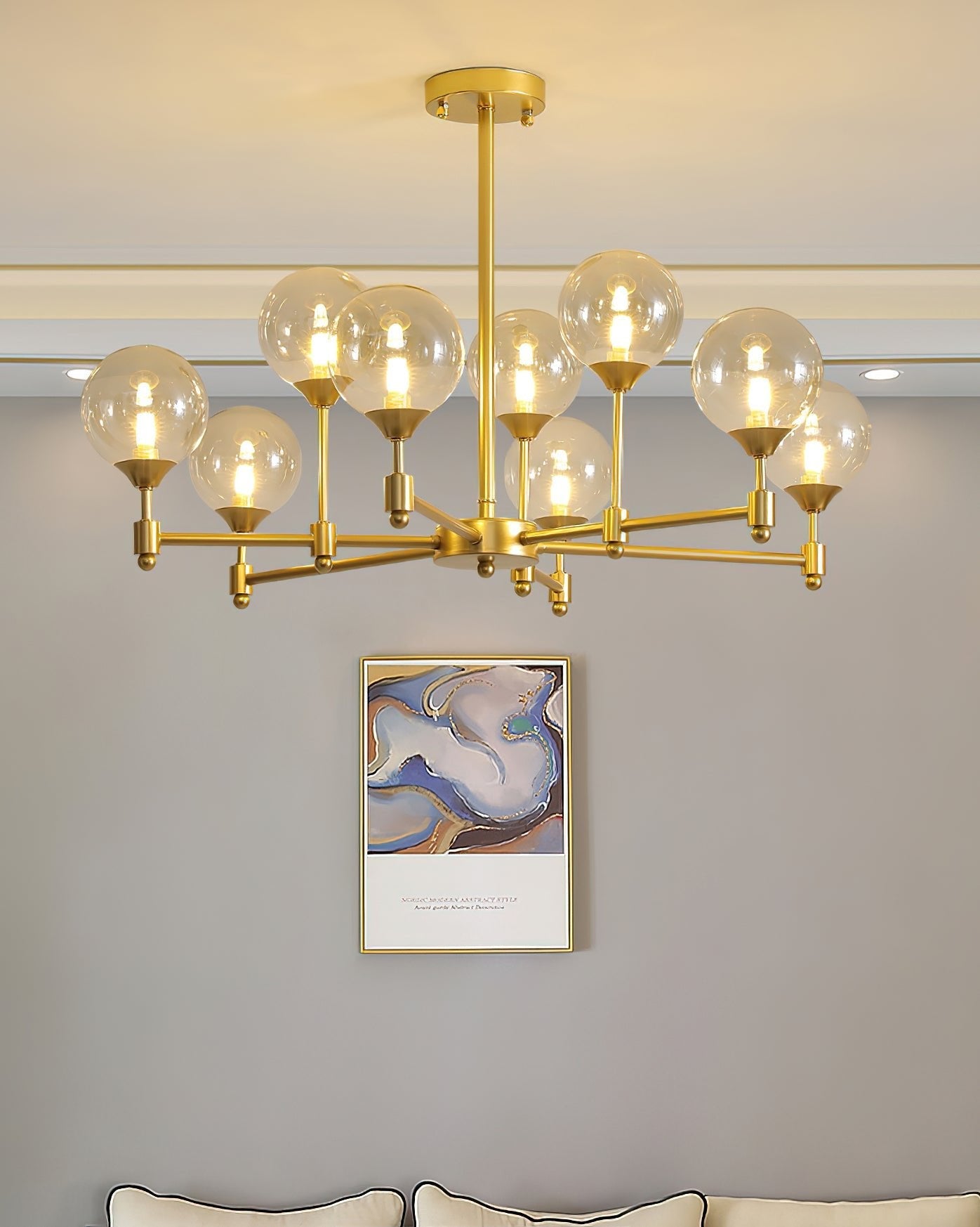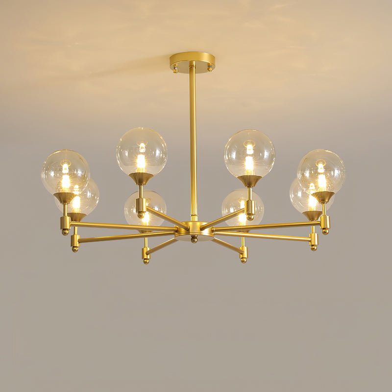 Introducing the Alessio Globe Chandelier - a sophisticated and rust-resistant pendant light made from high-quality brass. Featuring a unique design of enchanting glass that emits a gentle radiance, this chandelier adds a beautiful touch to any living space or room. Elevate your decor with this modern and elegant lighting piece.