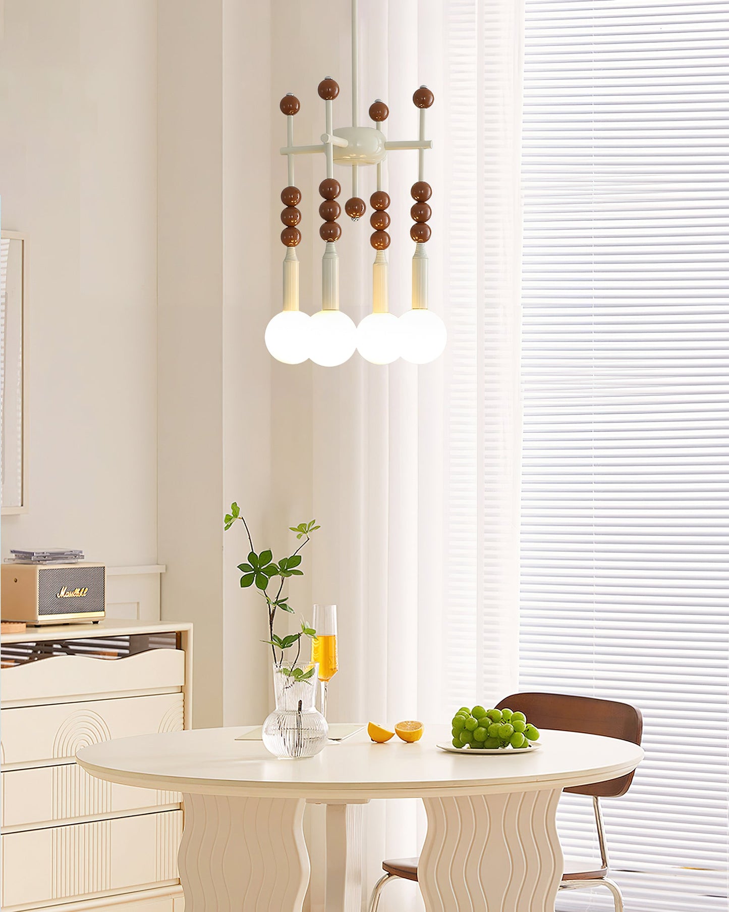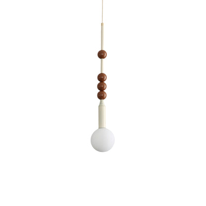 Introducing the Beadstream Pendant Light - a charming blend of polished brown and beige beads, perfect for adding whimsy to any space. The spherical frosted bulb provides soft, diffused light, ideal for cozy corners and modern interiors. A unique and visually appealing pendant lamp that combines handcrafted art with modern functionality.