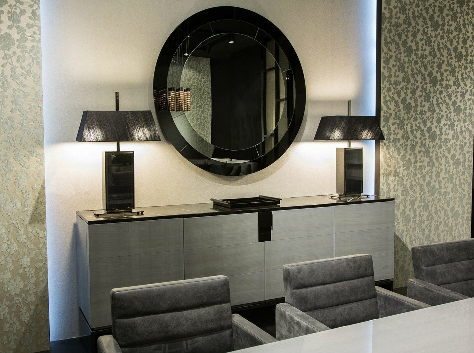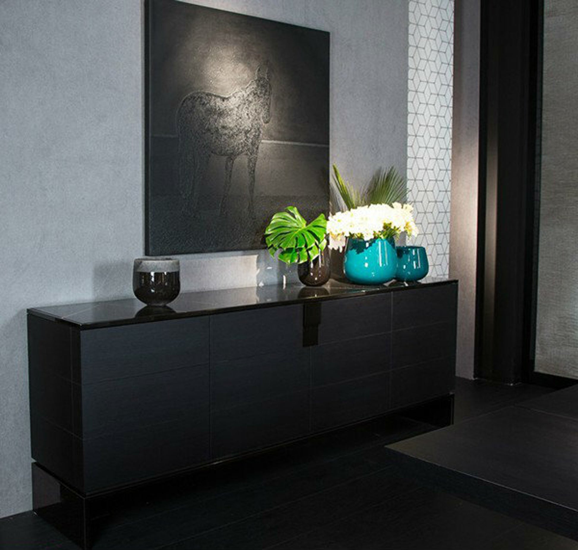 - (2) Self-Closing Drawers with Black Ecopelle Lined Interior (Upcharge Applies)