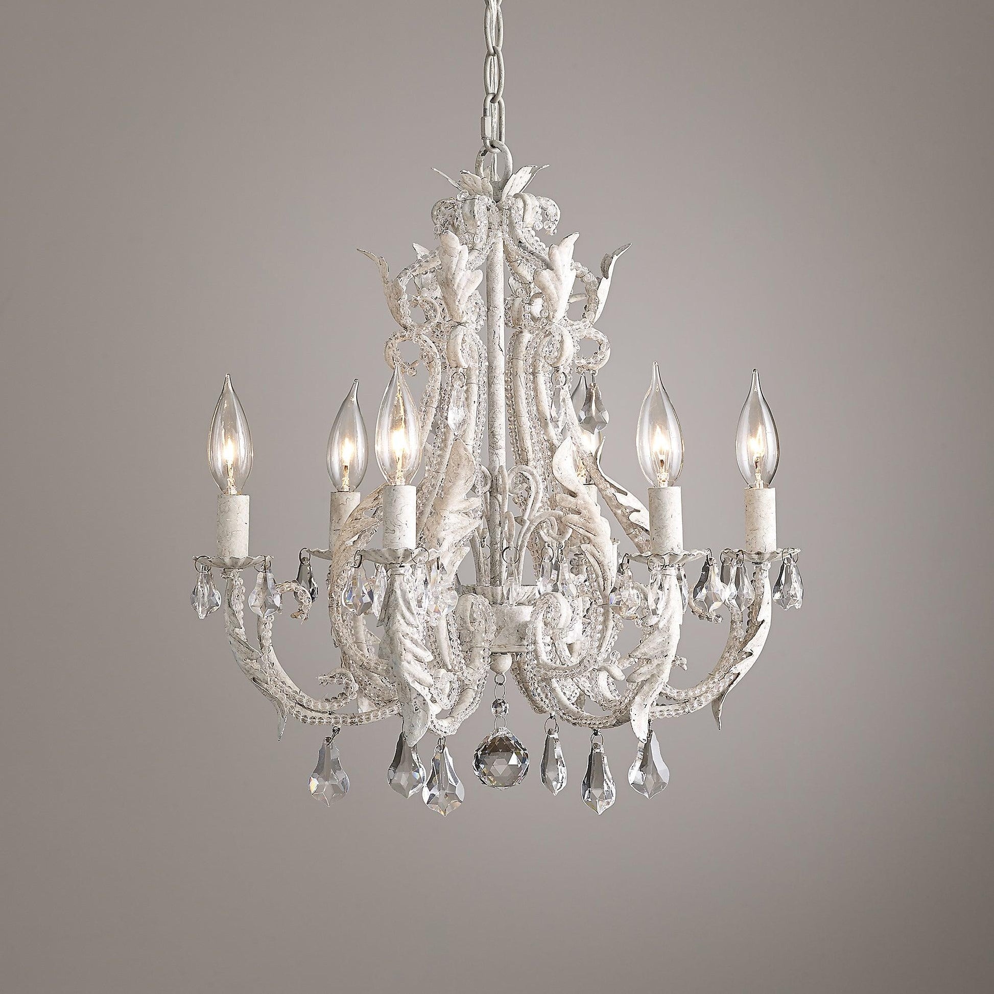 With a mix of scrolling arms, glittering crystal beads and delicate botanical accents, our chandelier exhibits equal amounts of genteel sweetness and unabashed grandeur.