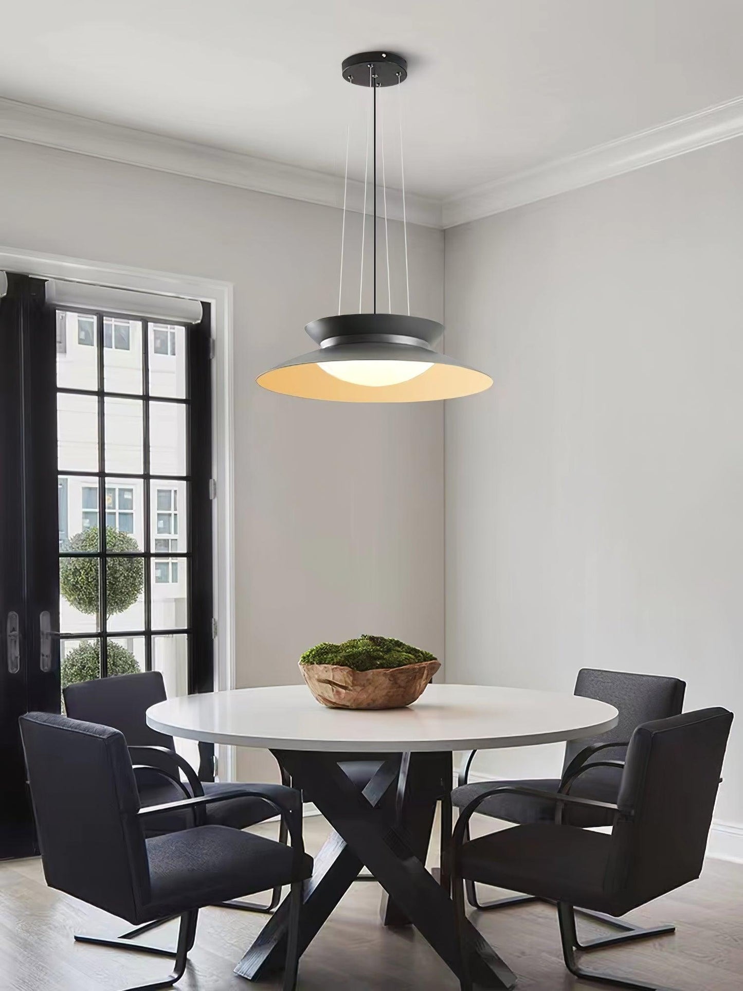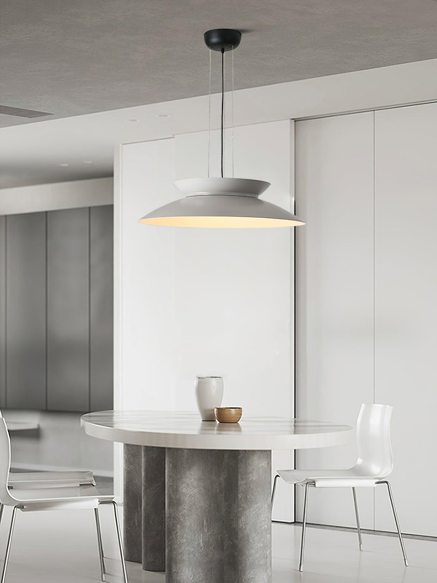 "Cetra" pendnat light by designer for ceenwe. Aluminum metal, white acrylic diffuser, original canopy. Wired for U.S. standards.