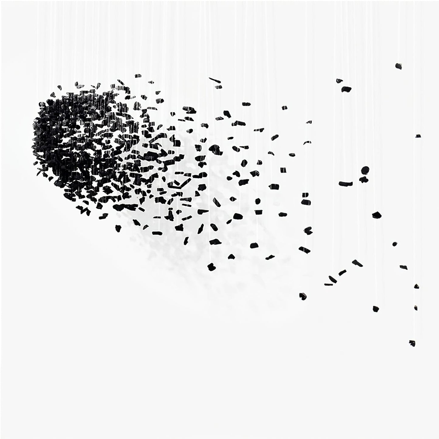What begins with a single lump of charcoal extends into a line and then expands to fill a space. The design artist uses charcoal, with its dualistic connotations of creation and destruction, to suggest that everything in the world is connected and that the entire universe is contained within a single point. The implications are simple and clear.
