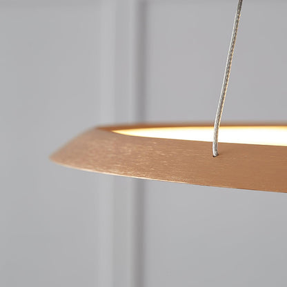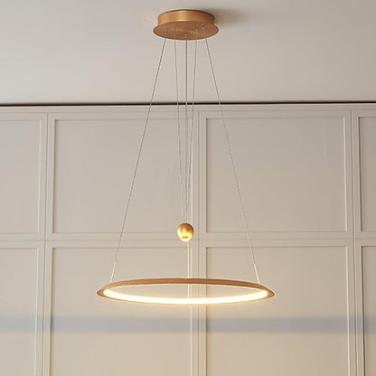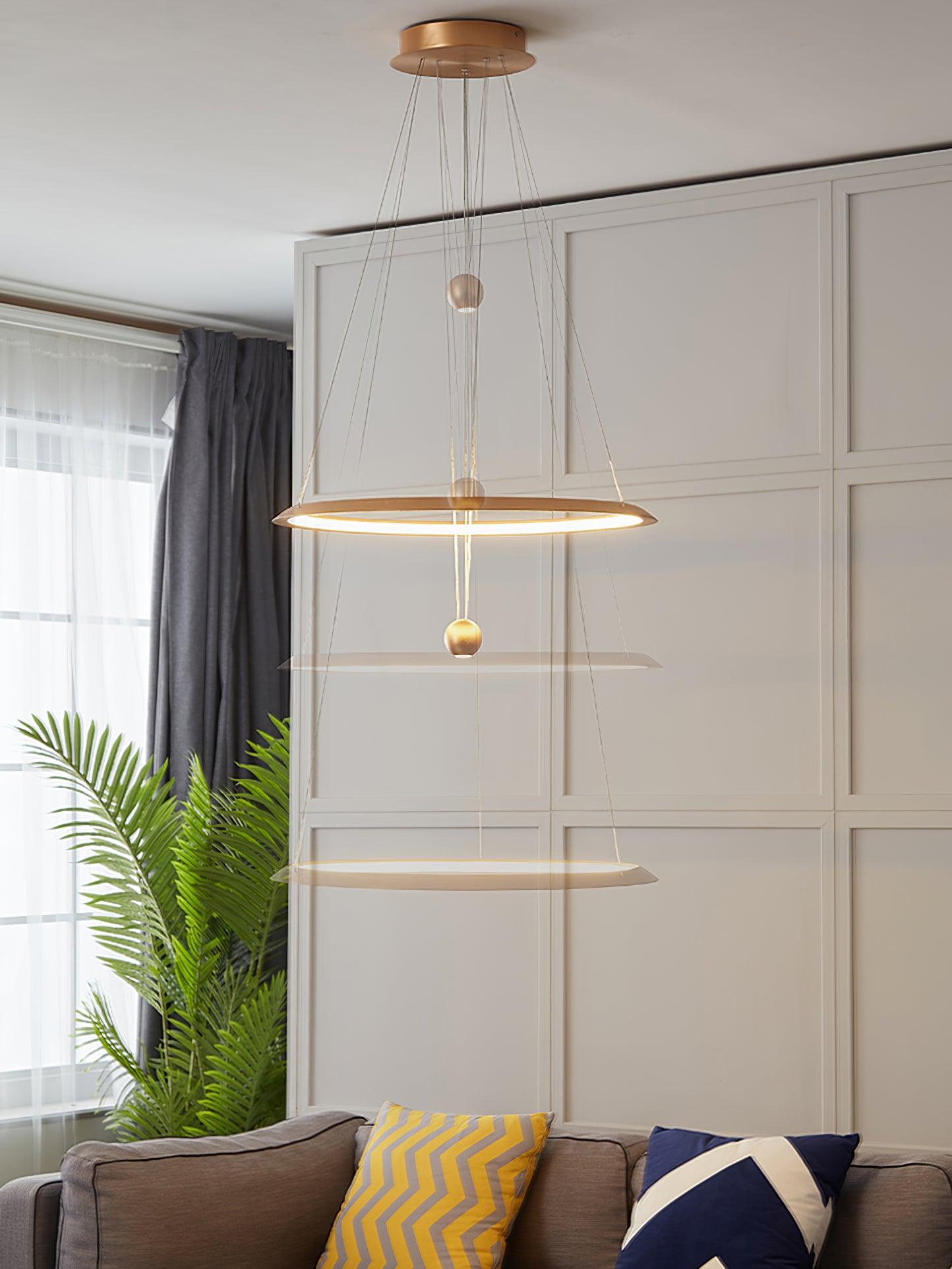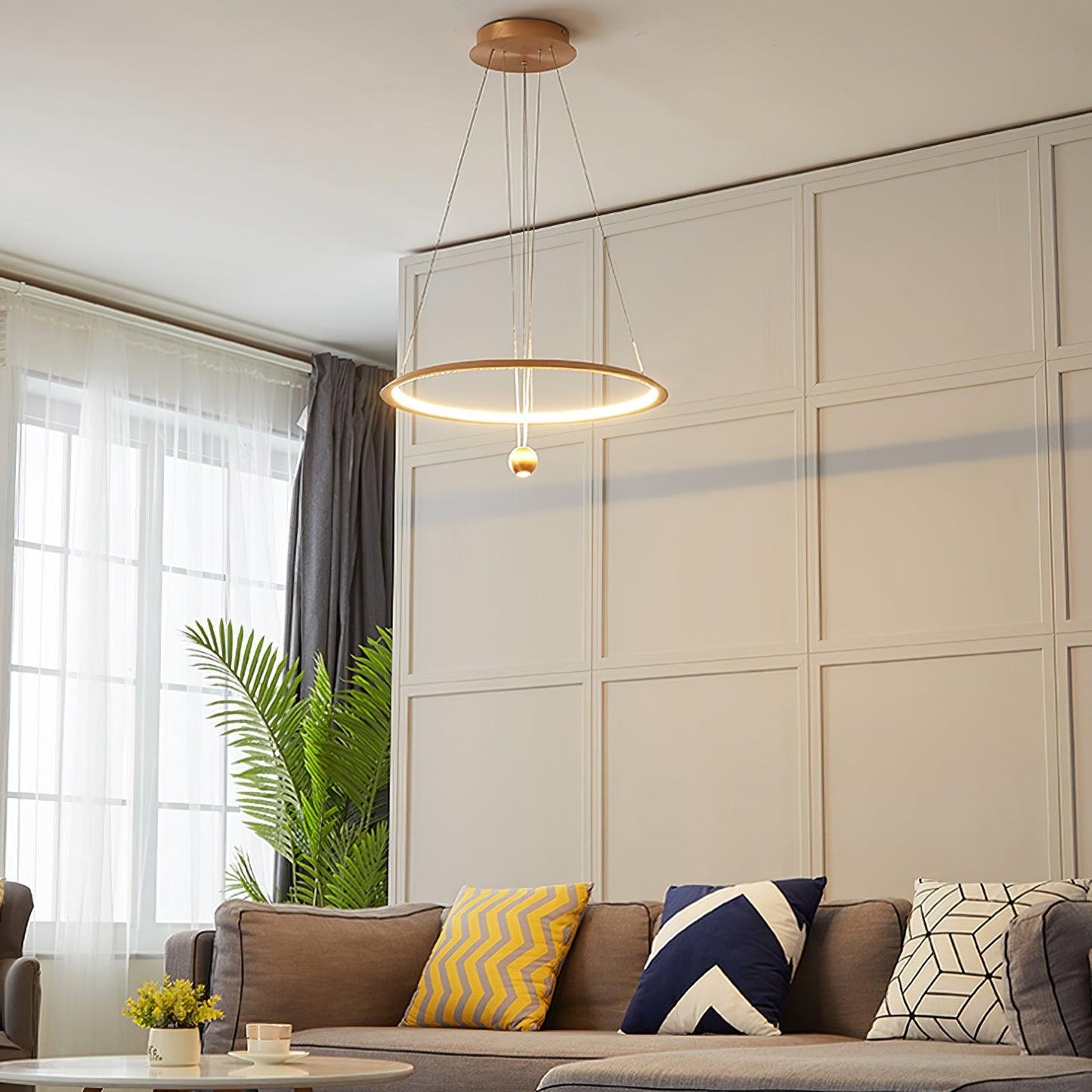 Elevate the atmosphere of larger spaces in your home with the Circular LED Chandelier from ceenwe. Simple, yet elegant all the same, this minimalist modern piece was designed by designer in 2017. It consists of a set of thin wires that spread out evenly, each connecting to the perimeter of a large and thin ring shade. The underside of the shade is lined with integrated LEDs that allow it to come to life when in use, emitting a bright and even layer of light throughout the immediate space below.