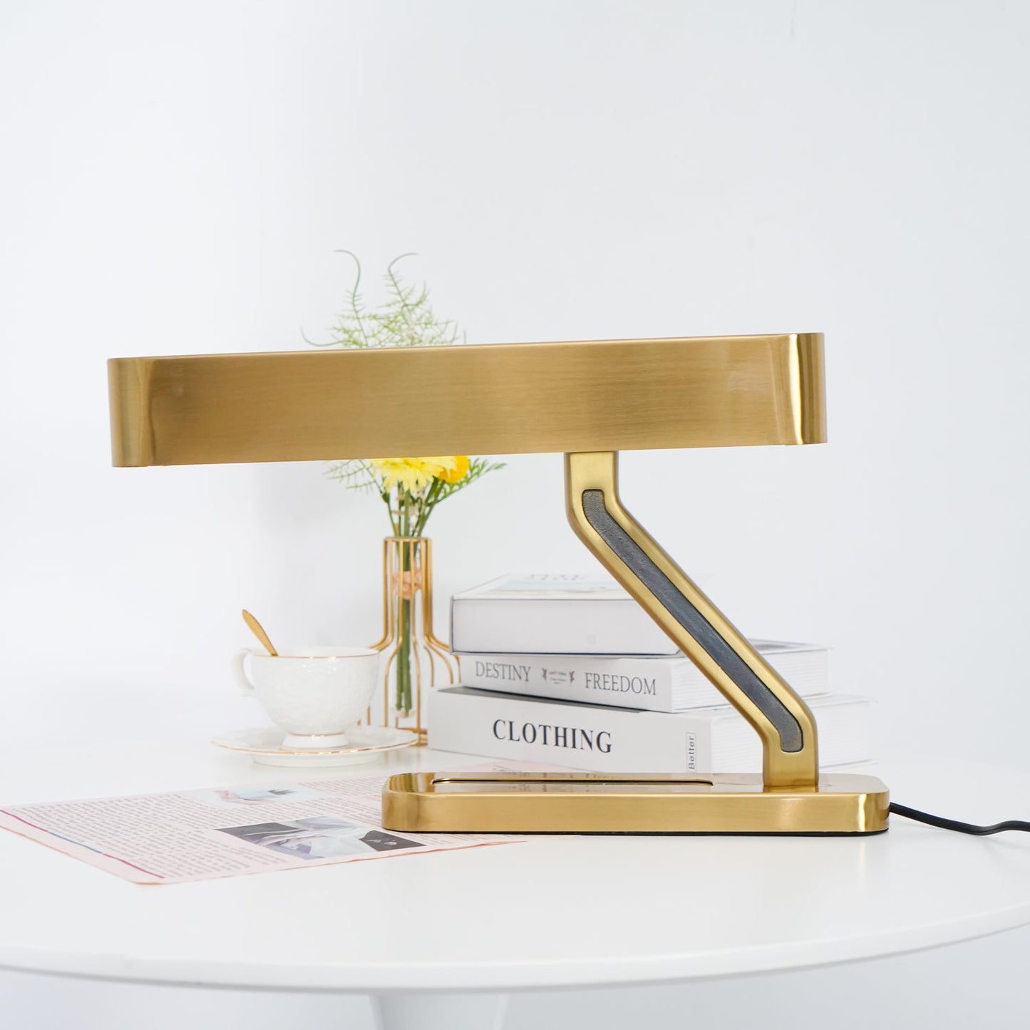 A machined brass grill lends an industrial feel to the sleek Colt Table Light. Featuring bronze inserts on the arm and opal diffusers for a soft, warm light, an inbuilt pen tray highlights we signature attention to detail.Â