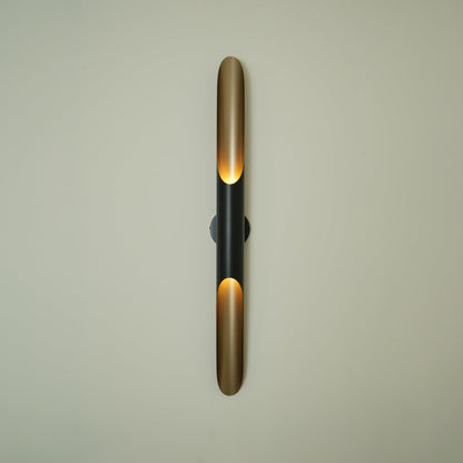 Coltrane's mid-century wall sconce is inspired by the famous John Coltrane and it is the perfect piece to create a beautiful lighting effect both indoors and outdoors. Handmade in steel by Delight FULL’s skilled artisans, it is a great example of how less is more. This wall light fixture has matte black and gold powder paint finishes, which give it a more contemporary style. It is prepared to be used in more humid atmospheres, making it the perfect outdoor sconce. You can pair up to two iron tubes, which will help to create a statement in your modern home decor. Additionally, it can be used in more minimalist hotel rooms. Coltrane Wall Sconce in Matte Black with Gold inside inspires a deep connection with the innovation and expression of Jazz music.