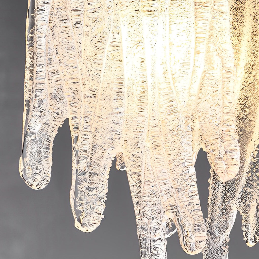 • This unique contemporary small chandelier light is composed of copper and handcrafted glass shade with a sophisticated and striking design that flows like water.