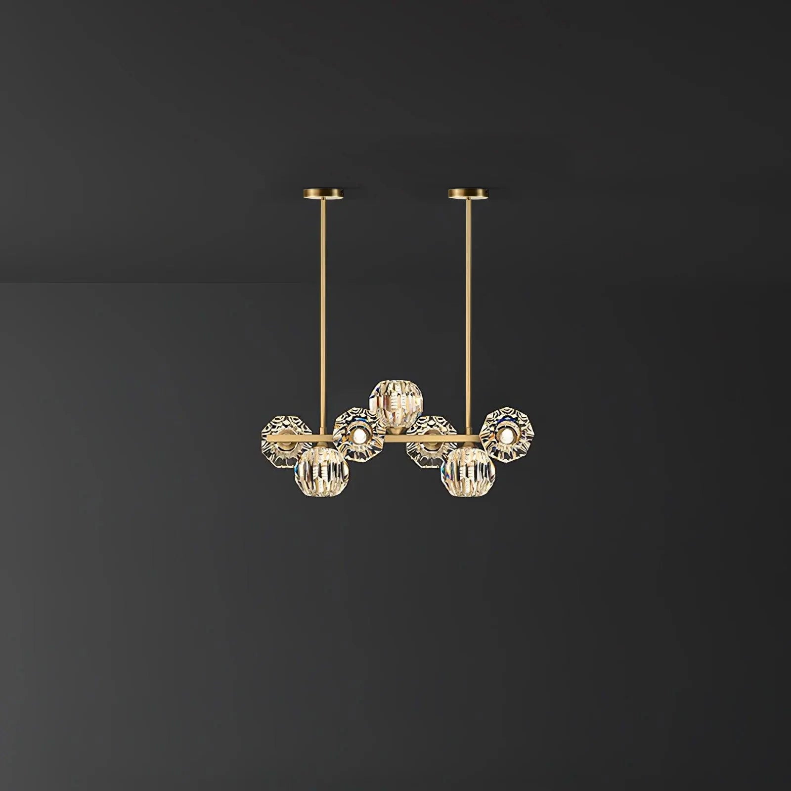 Our Brass Branch Chandelier Gold brings a touch of romance and modern elegance to your space. This fixture is made with a K9 crystal transparent shade and solid brass branches, providing a rich sparkling light to your room. Crystal balls add a luxurious feel to the modern design of the chandelier.