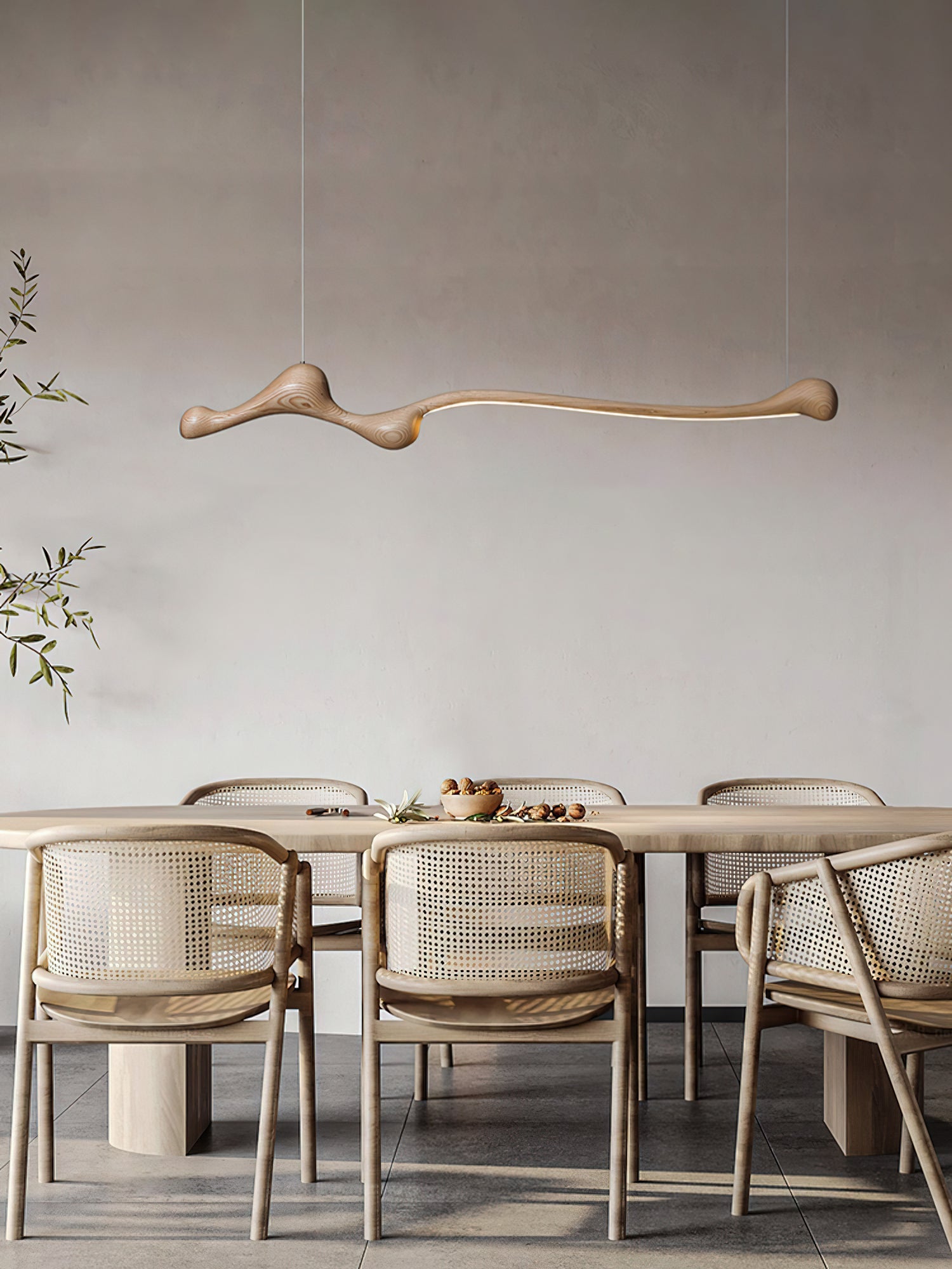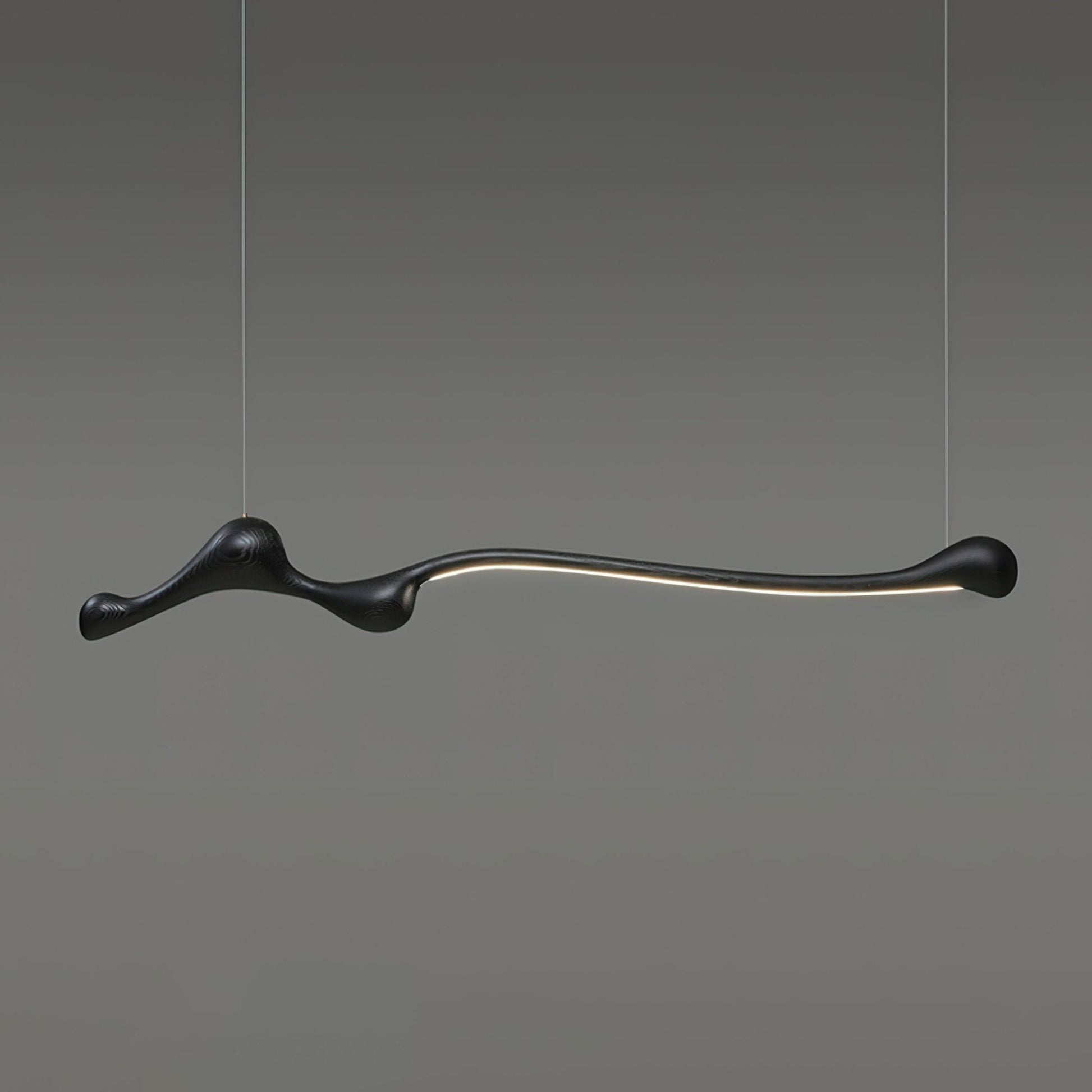 The Curva Pendant Lamp is inspired by the fluid, organic forms found in nature. Its unique, sweeping design resembles the gentle curve of a branch or a flowing river, embodying movement and elegance in a single, sculptural form. The lamp's dynamic shape adds a sense of motion and life to any space, making it a striking centerpiece that complements both modern and traditional interiors. The black finish accentuates the lamp's natural curves, while the hidden LED light source provides a soft, diffused glow, enhancing the texture and form of the wood. This piece is a perfect blend of artistry and functionality, designed to bring a touch of nature indoors.