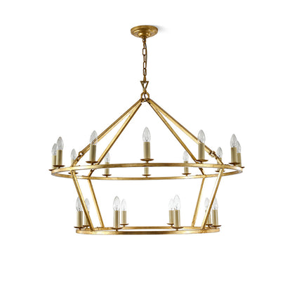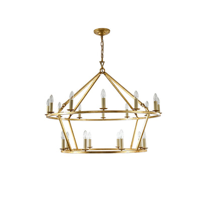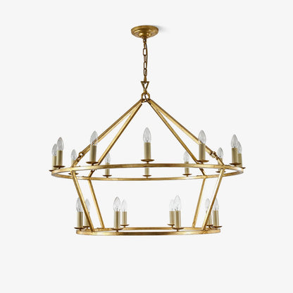 The Darlana Chandelier boasts a durable wrought brass finish and a classic Wagon Wheel shape, making it a refined choice for any interior. With 20 lights, this chandelier offers a clean and elegant silhouette that will elevate any space. It seamlessly blends traditional, transitional, and contemporary styles, making it a versatile and timeless addition to your home.