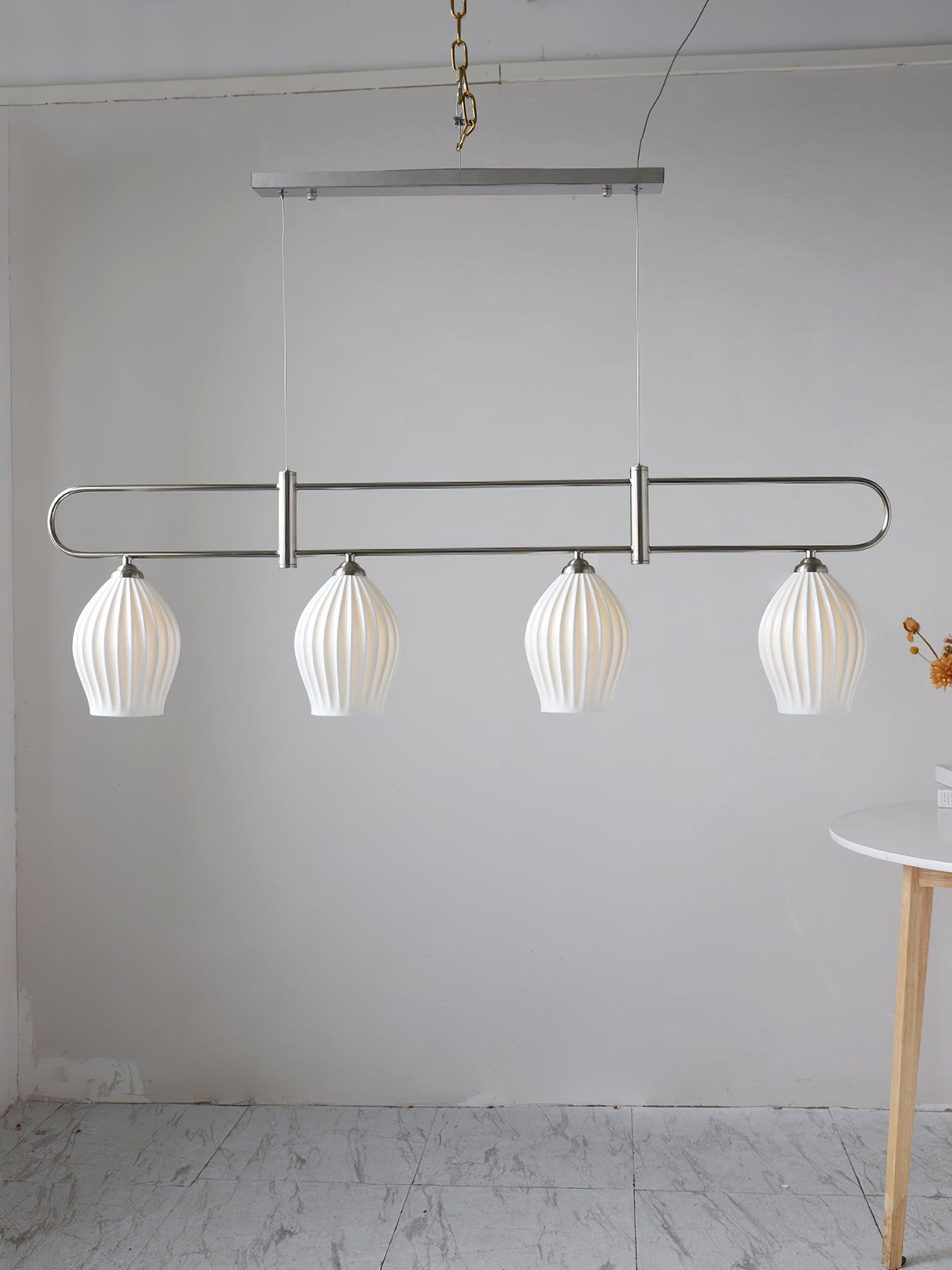 ceenwe favourite Fin pendant is now available in a series of eye-catching groupings, perfectly suited for creating a stunning focal point in sitting rooms, hallways, and dining rooms. The intricate and decorative hand made bone china shades will bring a warm and enhancing glow to any setting, and can be hung at different lengths, depending on personal preference. The exquisite matching ceiling rose, completes the look beautifully.