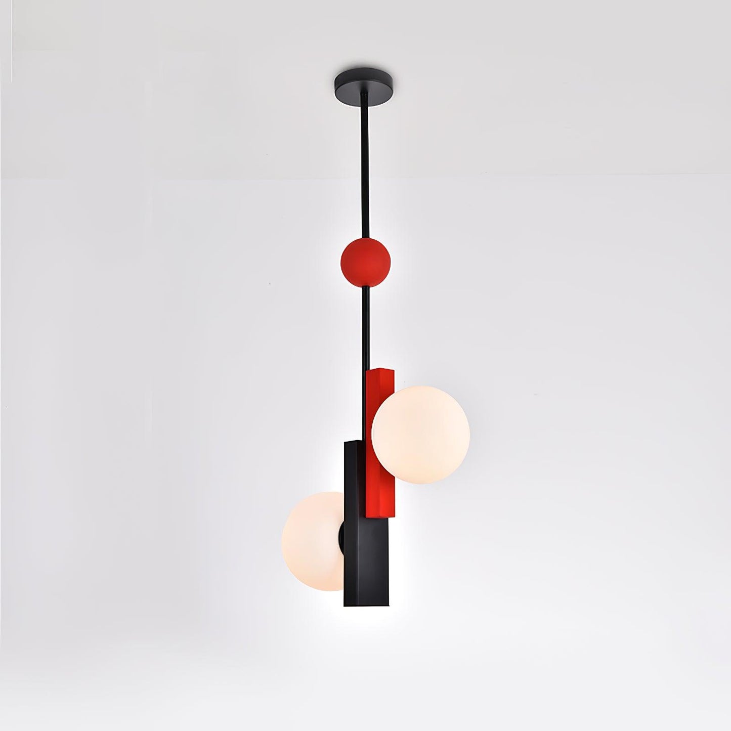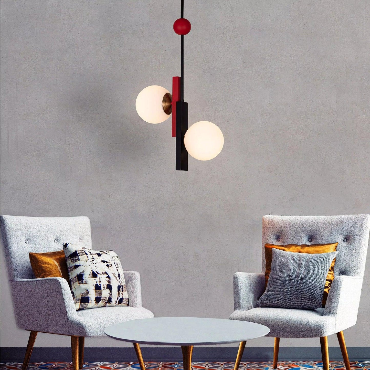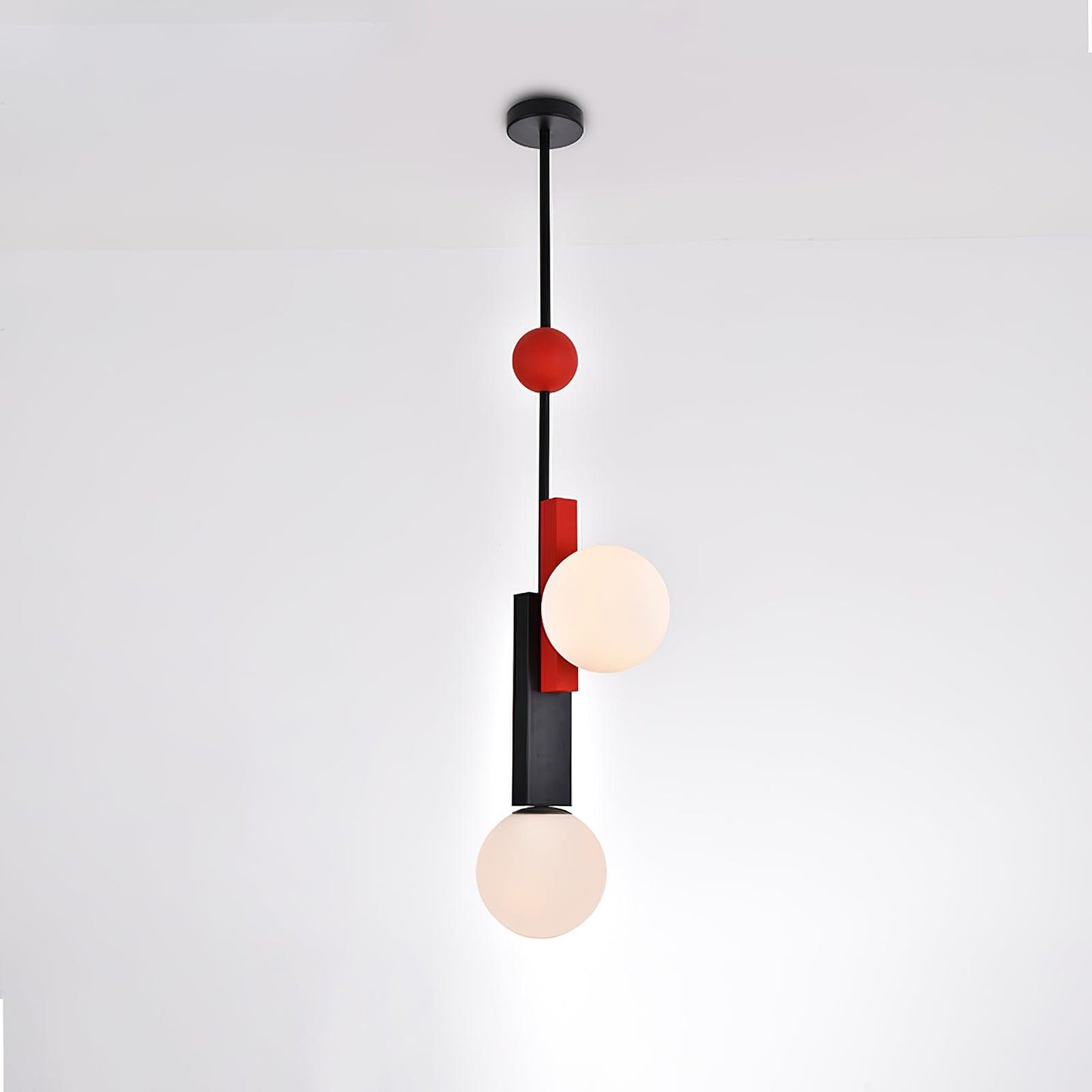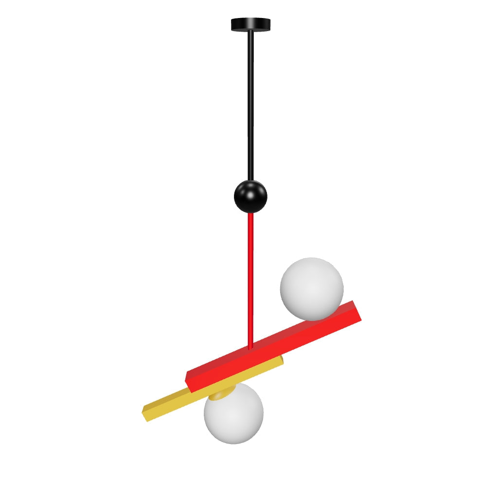 This First Dance Pendant Lamp acts as a burst of freshness, breathing life and vivacity into any room it illuminates! Featuring a metal body in a lively red and gold combination, it carries two whimsically positioned globes of milky white glass that give it a powerful aura to transform any space.