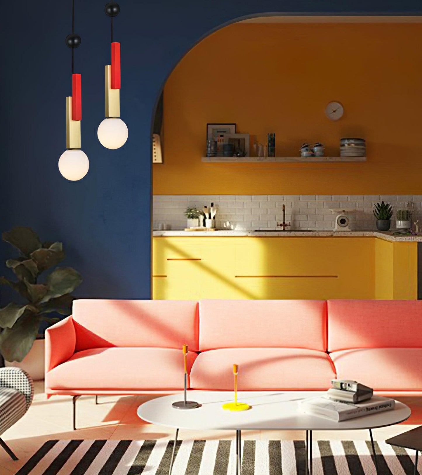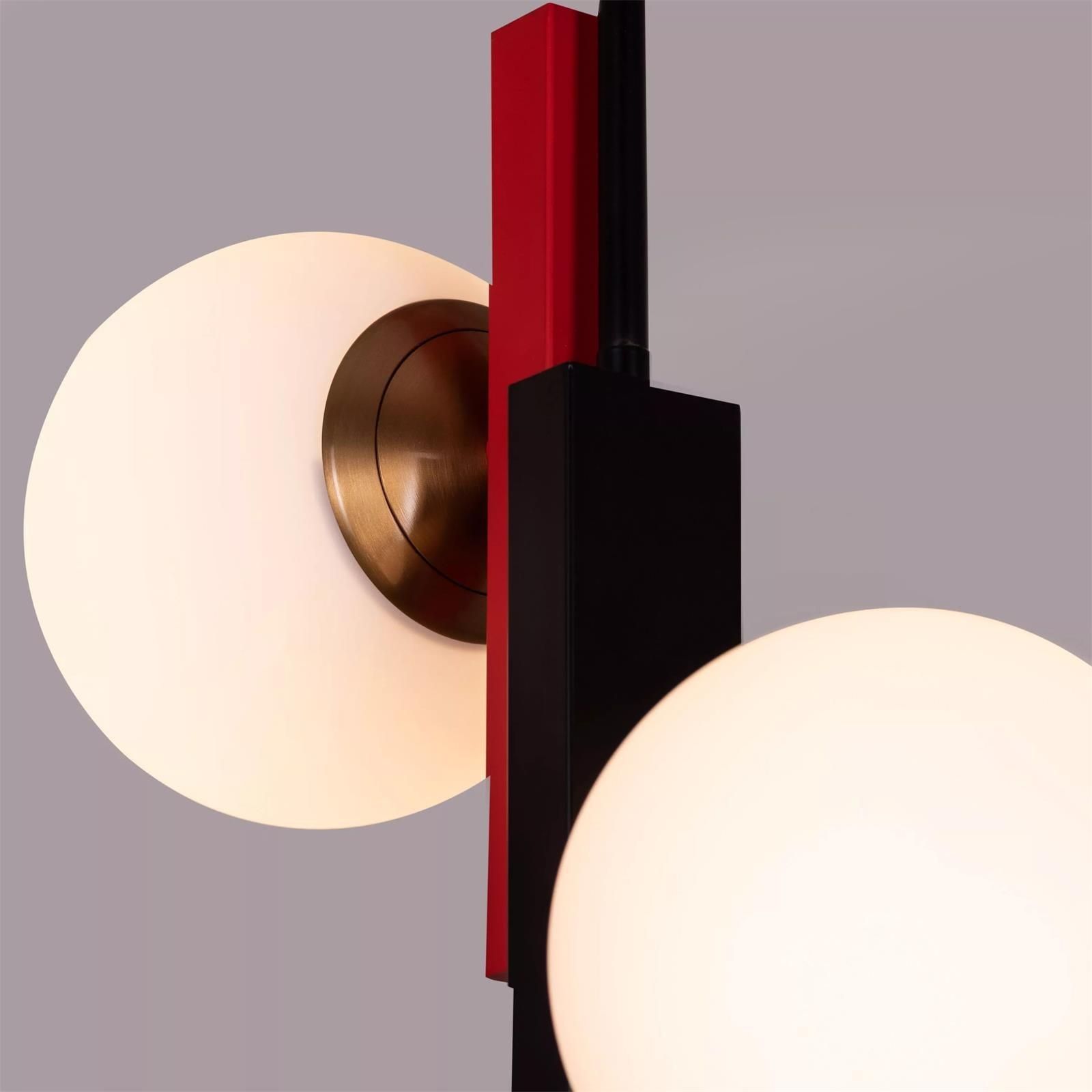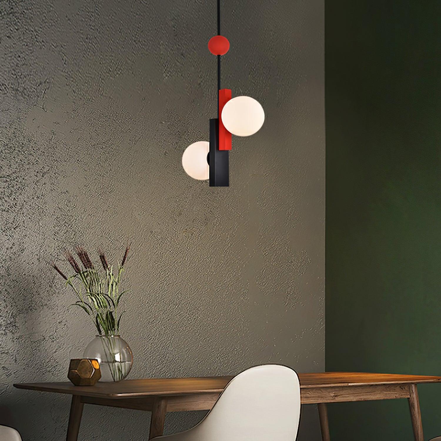 This First Dance Pendant Lamp acts as a burst of freshness, breathing life and vivacity into any room it illuminates! Featuring a metal body in a lively red and gold combination, it carries two whimsically positioned globes of milky white glass that give it a powerful aura to transform any space.
