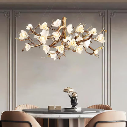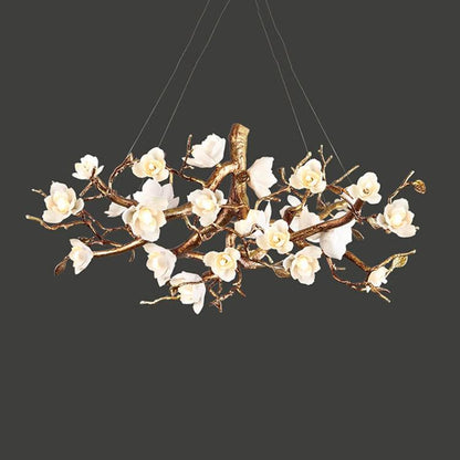 Add a touch of sophistication to any space with this stunning Flower Bloom Branch Brass Chandelier. Constructed from pure copper and featuring beautiful white ceramic flowers, this luxurious ceiling lamp will make a statement in any room. Its classic design ensures an elegant look that's sure to impress.