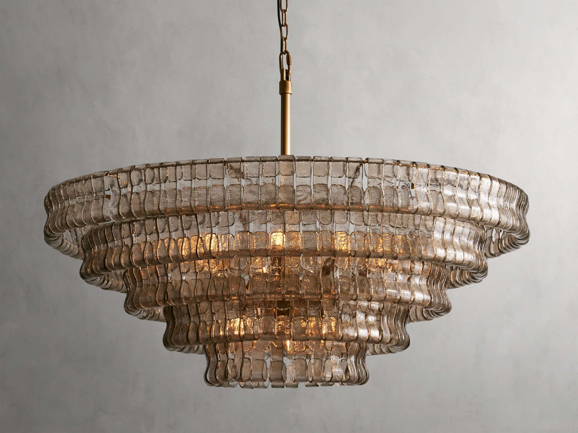 - 36" chandelier uses six 60-watt max E12 bulbs and the 48" chandelier uses 12 60-watt max E12 bulbs (not included). We recommend our Arhaus LED Candelabra E12 Bulbs (6610071B134).