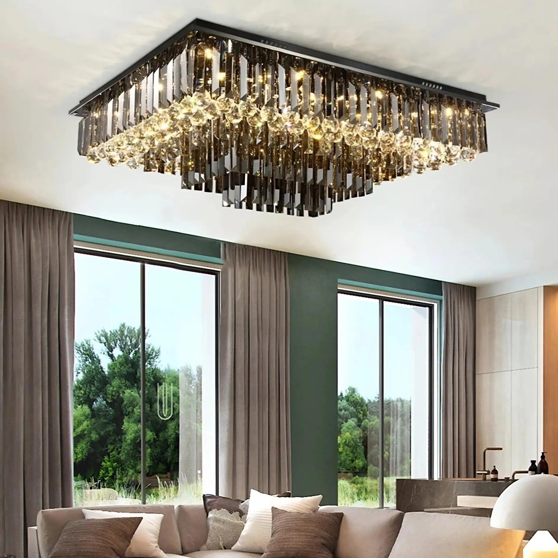 Gio Rectangular Crystal Ceiling Chandelier