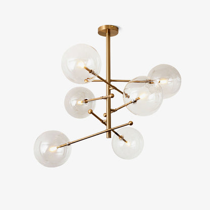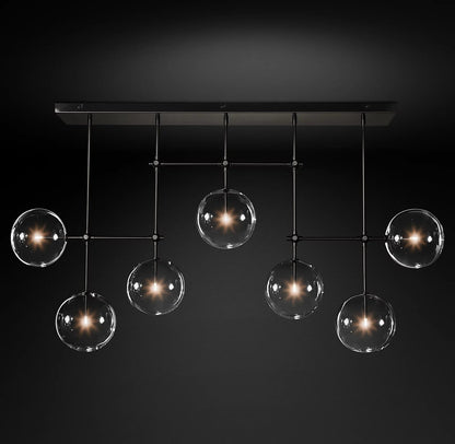 Elevate your space with our Glass Globe Mobile Chandelier. Hand-blown glass and a handcrafted metal frame blend timeless elements with modern design. Its exquisite shape adds sophistication to any room, creating a luxurious ambiance. A transitional chandelier that effortlessly elevates your space.