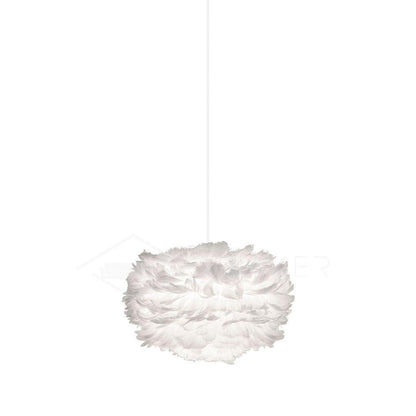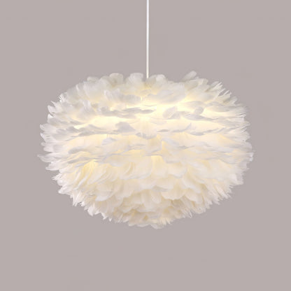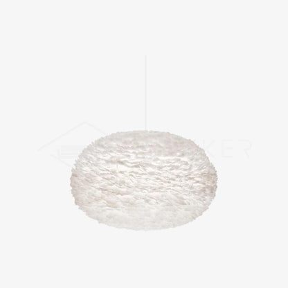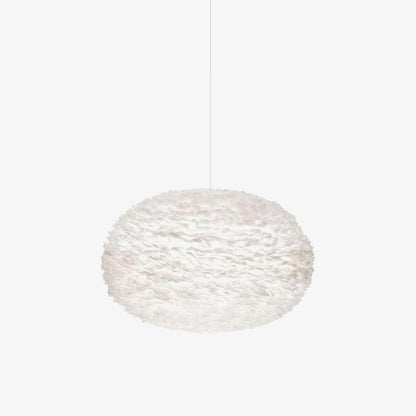 Thousands of goose feathers surround the bright core of the White Pendant, a design that is a statement of humane practices and sustainable production. The feathers are procured responsibly, sanitized and repurposed for the fixture, then attached to the paper structure on the inside. The Eos is fire-resistant and easily maintained; you can clean and revitalize the feathers with a hairdryer.
