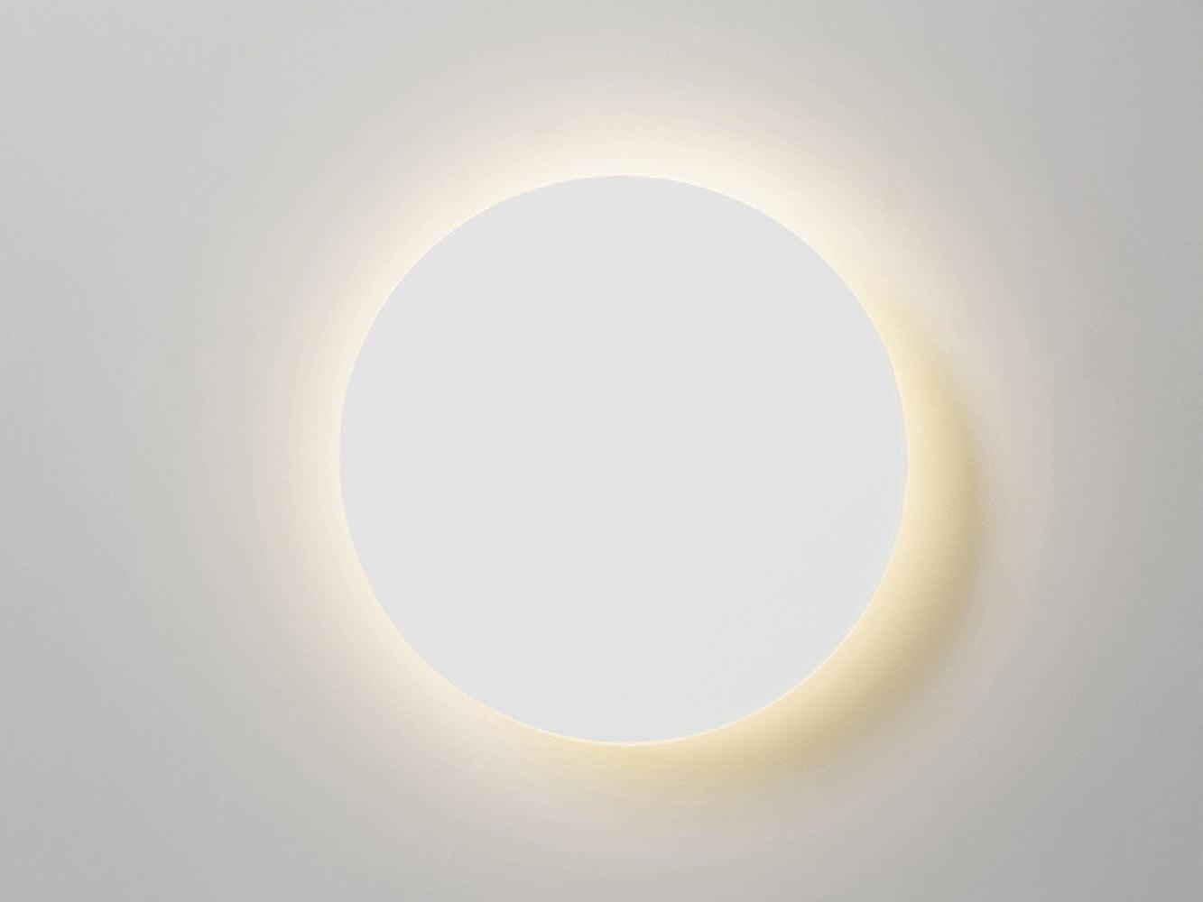 A streamlined disk structure, the GOSSA wall light from ceenweing is made from metal. It presents light in a ring from underneath the disc, like a halo. The light is available in white or brass finishes.