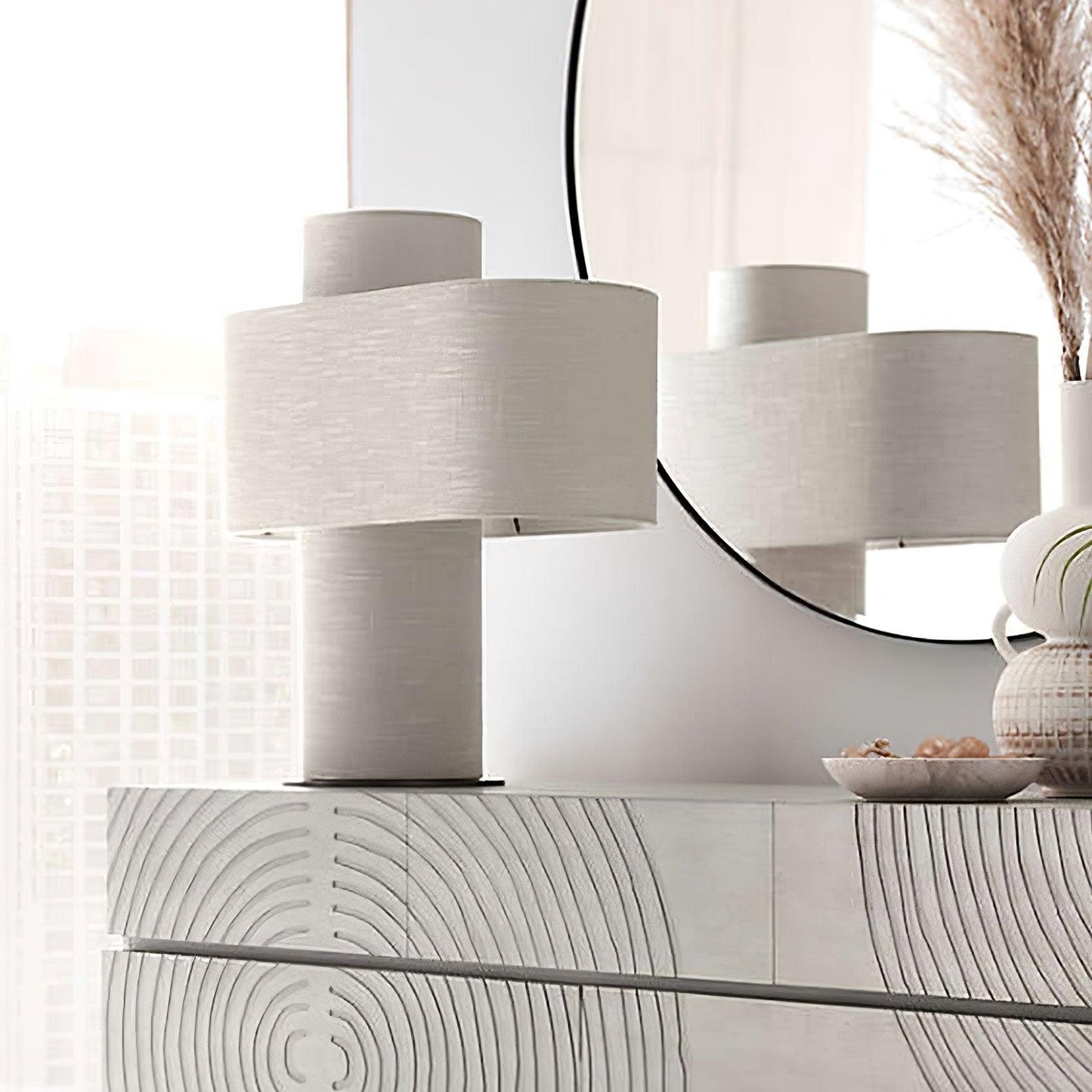 Illuminate your space with our Heron Glowing Table Lamp. The ivory linen fabric gently diffuses warm light through the drum frame, creating a soft and inviting glow. A versatile addition to any room, this sculptural lamp is ideal for the bedside table.Â