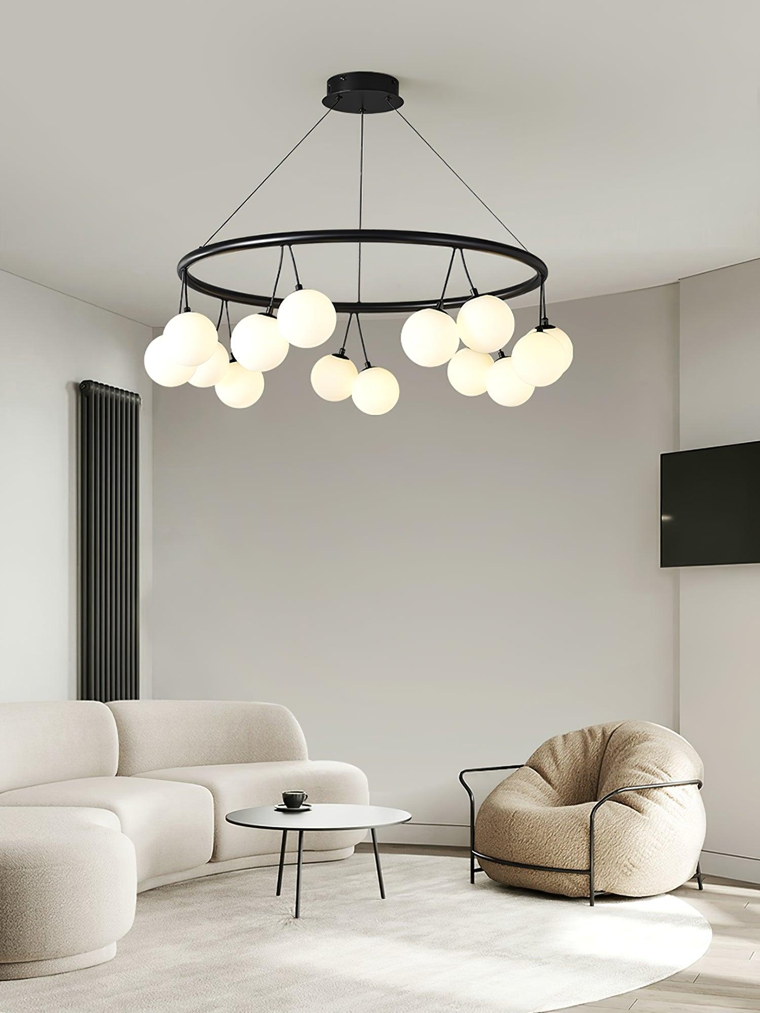The Heronia Chandelier adds a sleek, stylish touch to any home. Featuring a classic black finish and glass construction, this chandelier is sure to be a timeless addition to your living space. Enjoy the muted simplicity of the Heronia and enjoy its unique style for years to come.