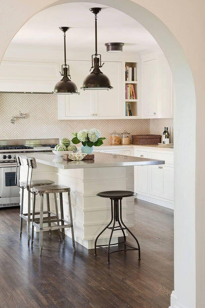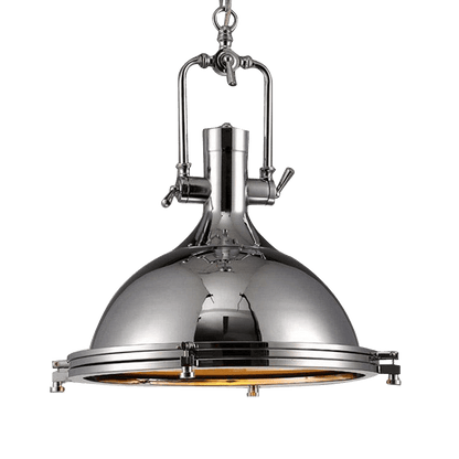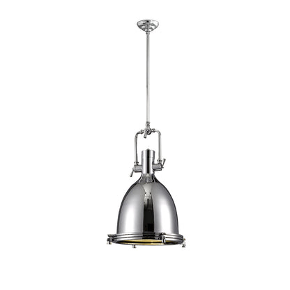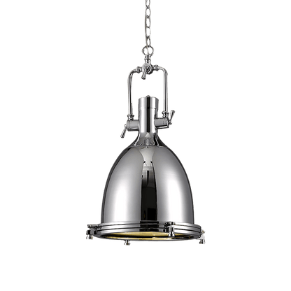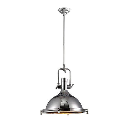 This polished chrome, industrial-style pendant light is perfect for creating a soft, warm lighting in any room. Durable and sturdy, it features an integrated diffuser to deliver an even, nautical-style glow.
