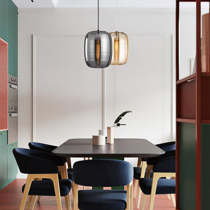 This beautiful pendant light features a translucent glass shade and rich gold finish canopy. Illuminate your favorite décor through the bold presence of this striking pendant light. Designed with contemporary style, this specialty ribbed glass shade brings attractive ambiance to your home, complementing any indoor/outdoor space.