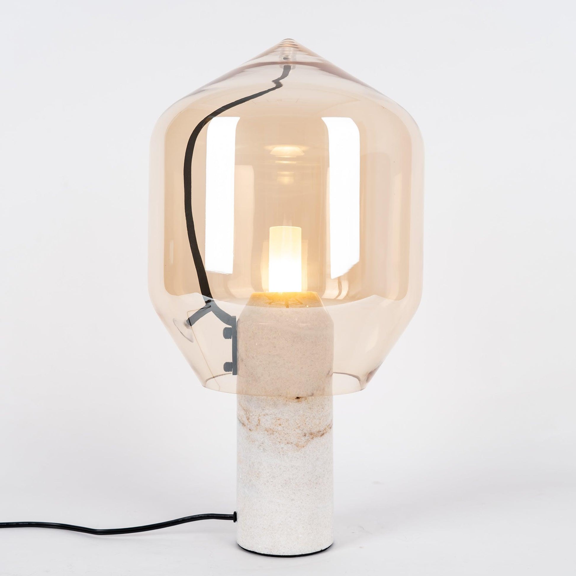 An elegant, modern, and traditional piece of craftsmanship. The shade is made in mouth-blown glass shade in the very best quality. The combination of glass and marble, which is one of the biggest trends at the moment, makes the lamp something extraordinary for your home ,Created a robust lamp that looks like a piece of art in itself. The lamp is made in two colours, so you have the opportunity to choose between an eye-catching colour and a more neutral one.
