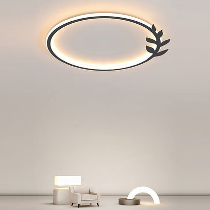 20'' Round Dimmable Black Flush Mount Ceiling Lights LED Lights with Leaf Shaped Edge
