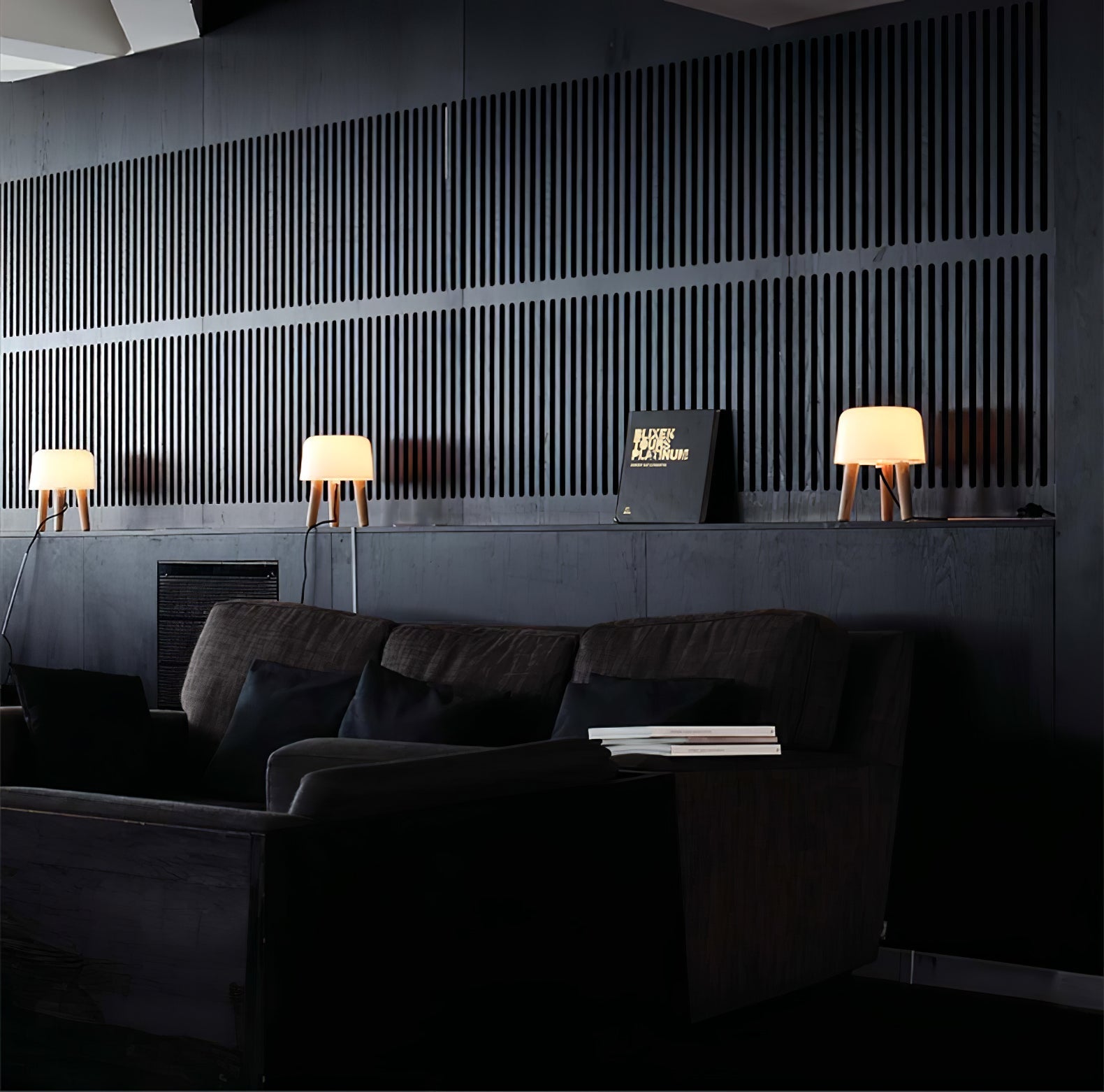 The Milk Table Lamp's design is reminiscent of the classic milking stool, with three solid white wax wood legs supporting a circular lampshade made of durable borosilicate glass. The curved surface of the lampshade and legs create a soft and adjustable lighting experience.