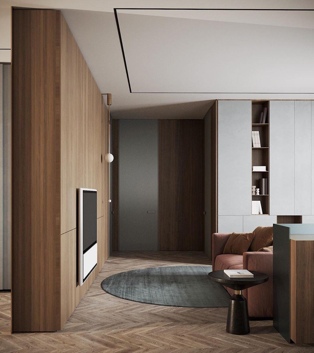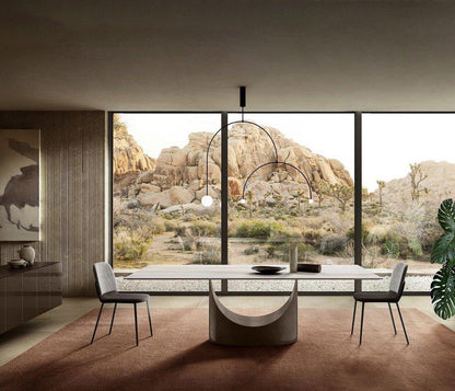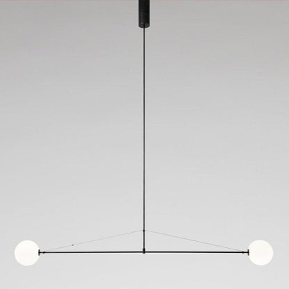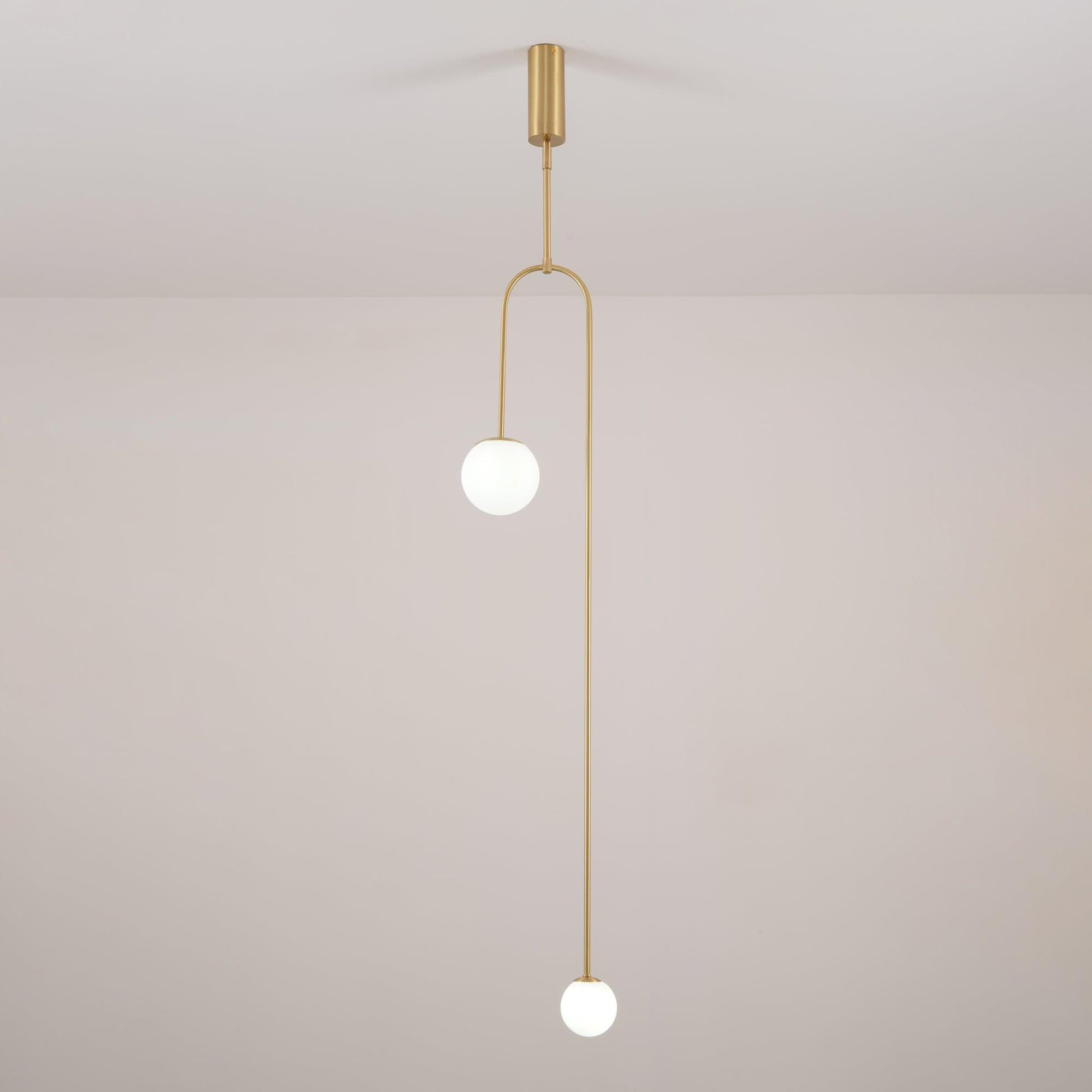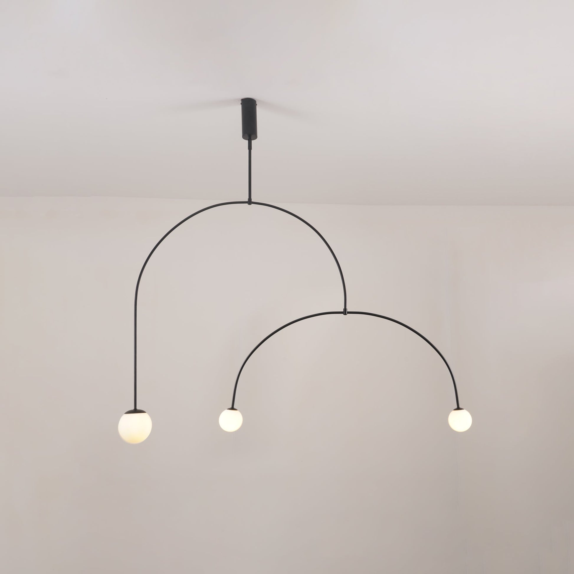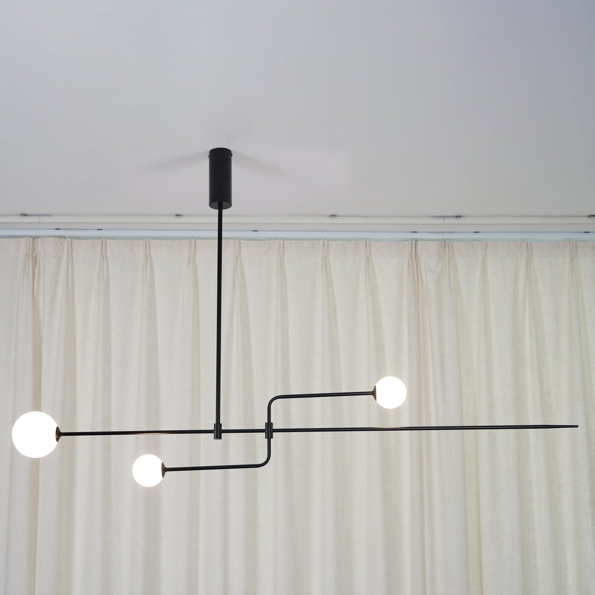 This lighting reveals a minimalist design with very graphic and uncluttered forms. These lines in the air have several sources of warm light, with diffusers in opaline-blown glass.