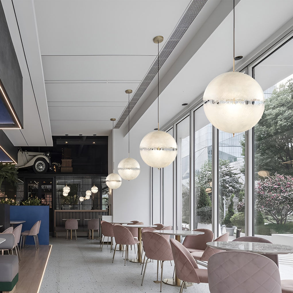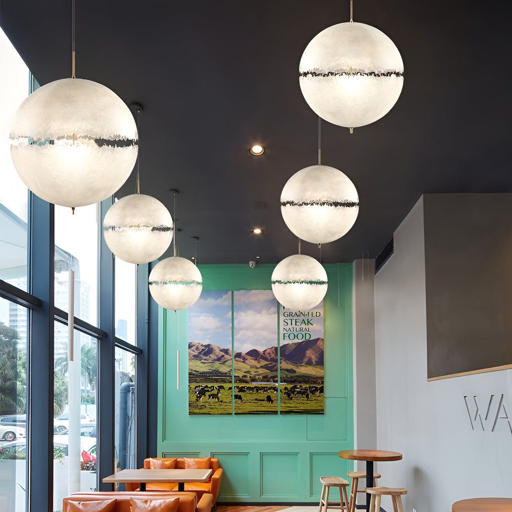 - The lunar chandelier is made of resin material, and the surface texture of the lamp body is natural and clear. And its light transmittance is high, and the light it transmits is bright and uniform without being dazzling.