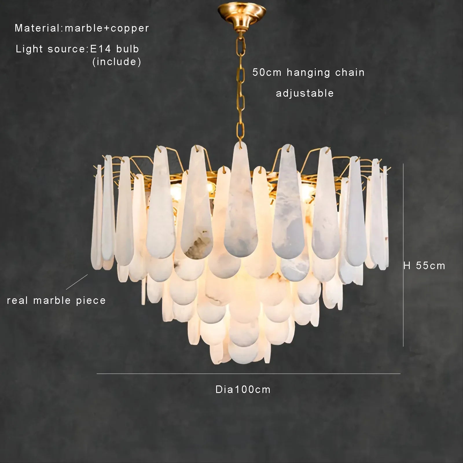 Upgrade your living space with the elegant Moonshade Marble Chandelier. Expertly crafted with high-quality materials, this chandelier adds a touch of sophistication to any room. With its unique moonshade design and smooth marble finish, it creates a warm and inviting atmosphere. Elevate your home decor with this stunning centerpiece.