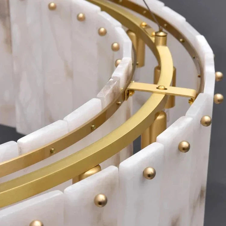 Elevate your dining room with the Moonshade Natural Marble Dining Room Chandelier. Crafted from Spanish imported marble, its soft light and copper body will add an elegant touch to your space. Enjoy the luxurious ambiance and sleek design.